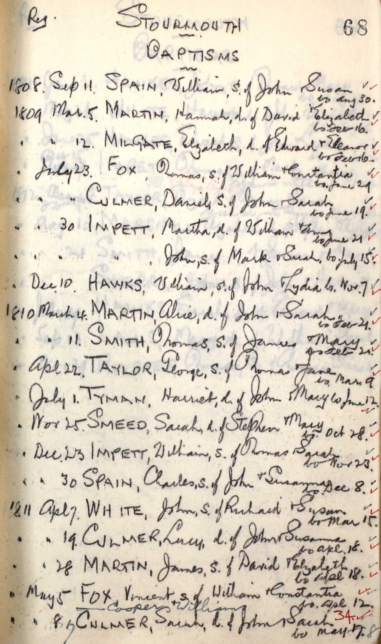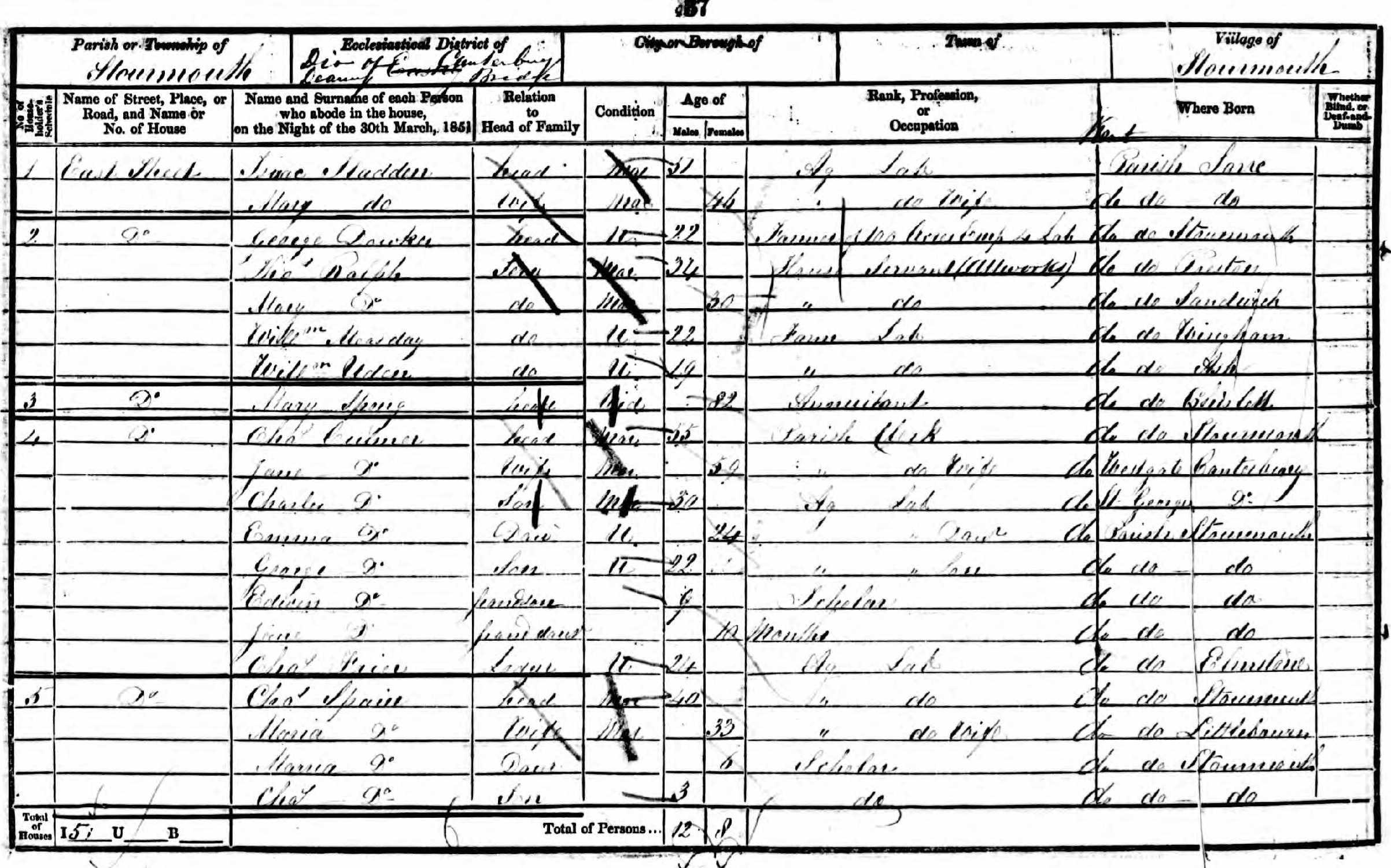 Charles Spain, the three times great-uncle of Nigel Horne, was born in Stourmouth, Kent, England on Dec 8, 18101, was baptized there at All Saints on Dec 30, 1810 and married Maria Reeney (with whom he had 2 children: Maria and Charles) in Eastry, Kent, England around Nov 18432. On Mar 30, 1851, he lived at East Street in Stourmouth3.