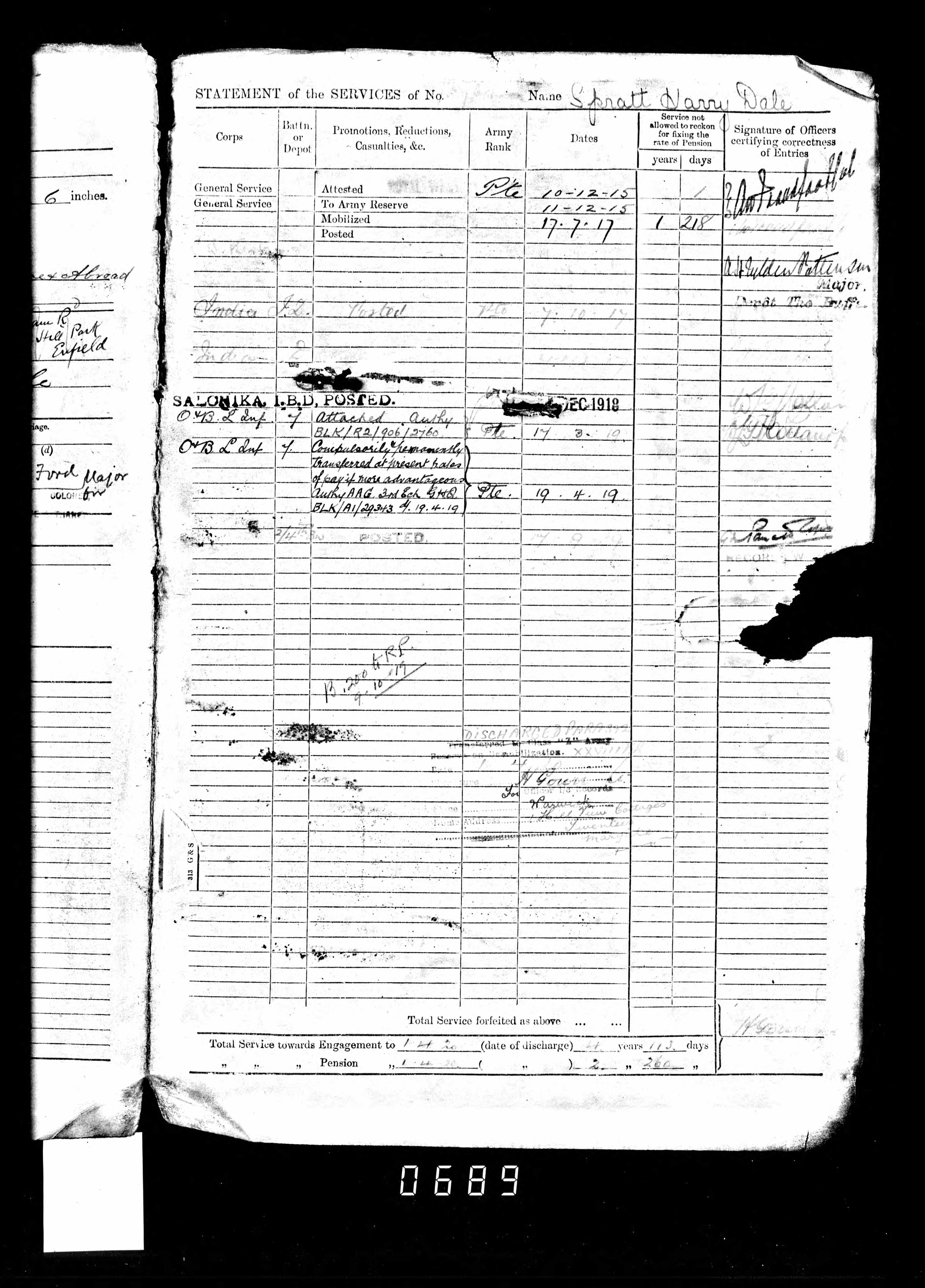 Harry Dale Spratt - WW1 - 1