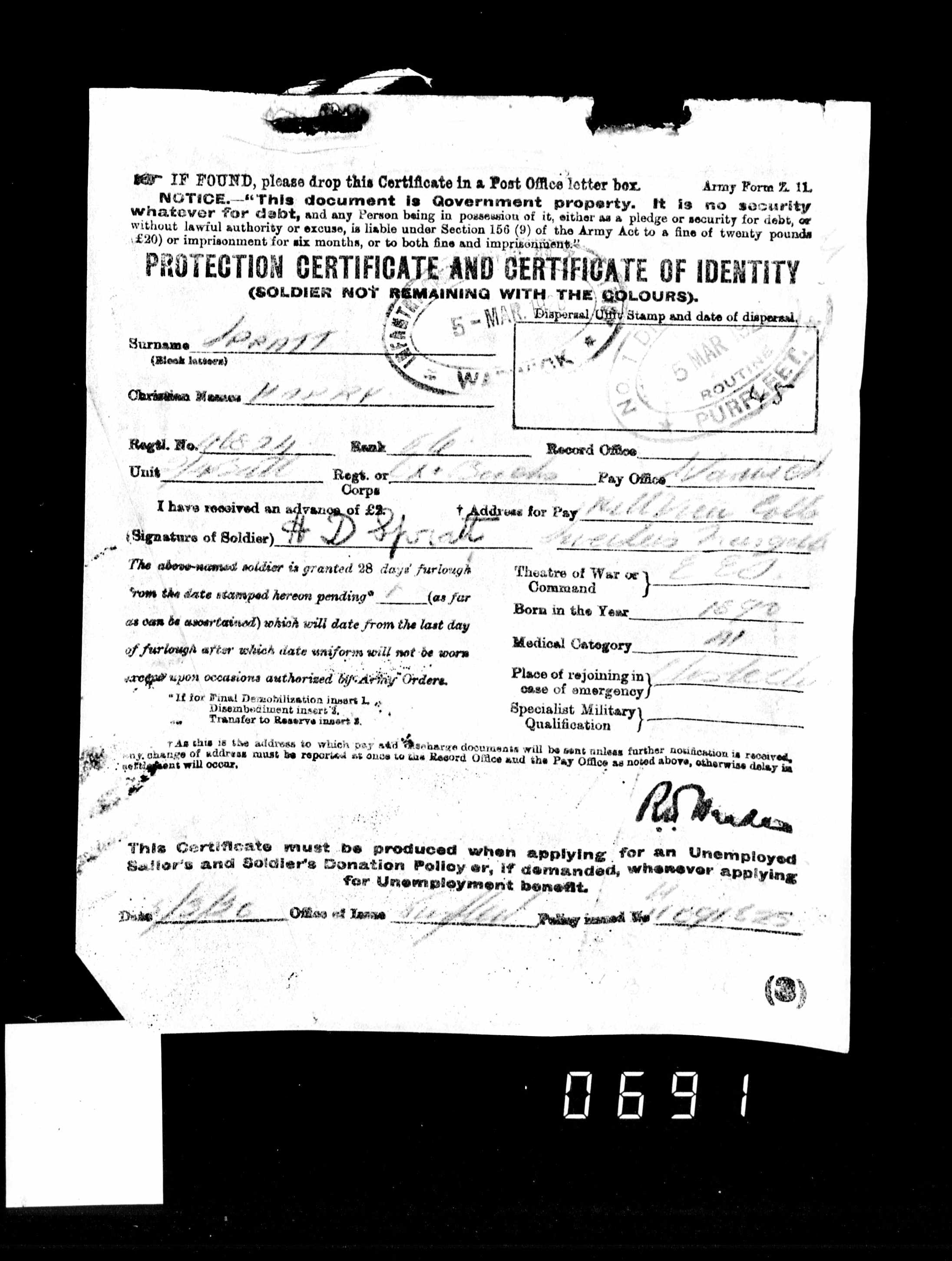 British Army Service Records 1914-1920 Transcription - GBM-WO363-4-7329419-32-691