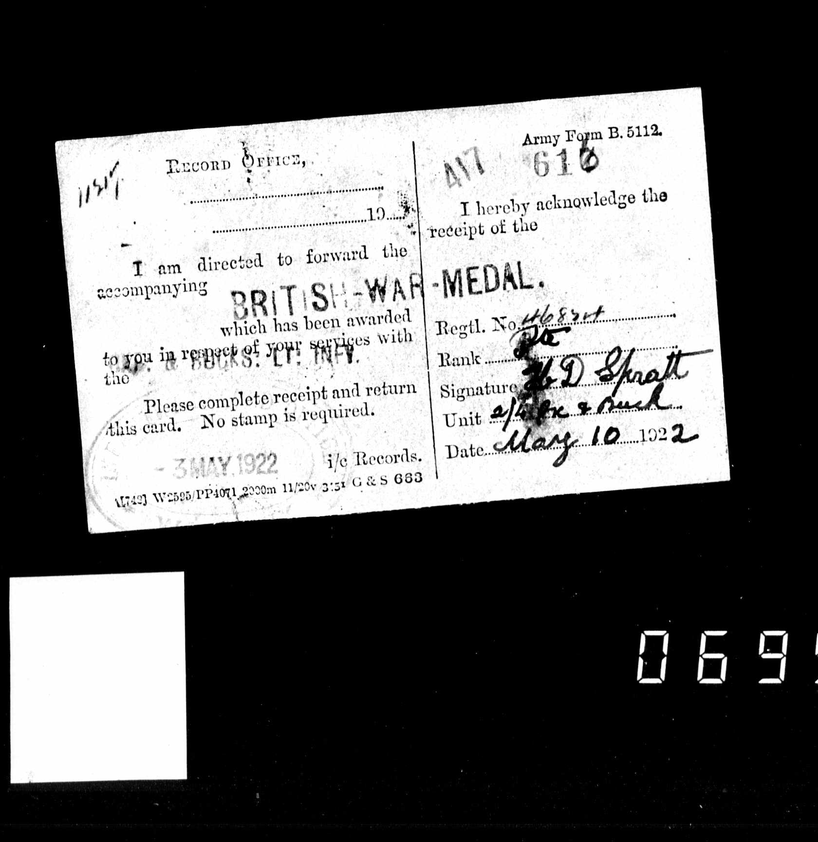 Harry Dale Spratt - WW1 - 7