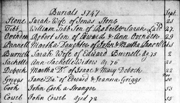 He died on Nov 11, 1747 in Margate2 and was buried there at St John the Baptist Church on Nov 15, 1747 (See page 458 of "A tour through the Isle of Thanet: and some other parts of east Kent"; books.google.com)4.