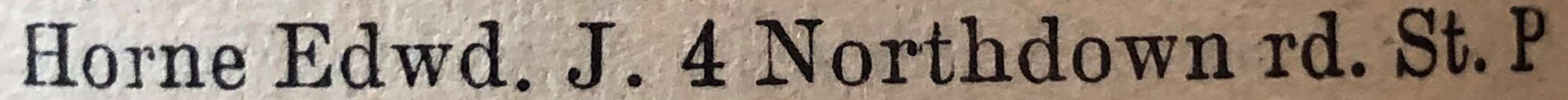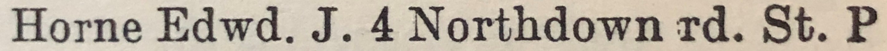 Edward spent all of his life in Kent, England. Throughout his life, he lived in several places around the county: at 23 Victoria Avenue, Northdown, Margate, Kent, England on Apr 2, 191114; at Rose Cottage, Fairfield, Thanet on Jun 19, 19212; in St Peters, Thanet in 1932; at 3 Blagdon Cottages, Tippledore Lane, St Peters, Thanet in 193613; on 29 Walmsley Road in Broadstairs on Sep 29, 19393; and on 4 Northdown Road, St Peters, Thanet in 19537, in 19598, in 19639, in 196710, in 197111 and in 197412. 1939 Civilian Role: Auxiliary Fire Service in 1939.