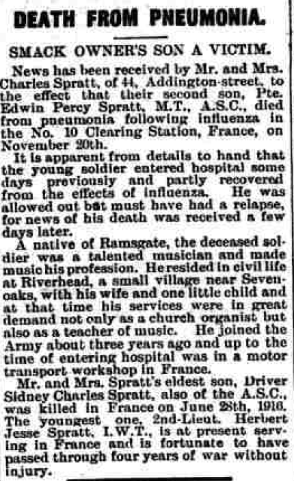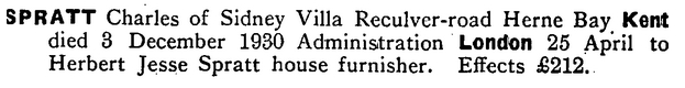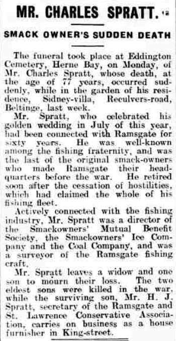 [ Home ] | [ Calendar ] | [ Surnames Index ] | [ Family History ]A smack owner and fish salesman and uk merchant navy apprentice and the child of James Spratt (an agricultural laborer) and Sarah Spain,
