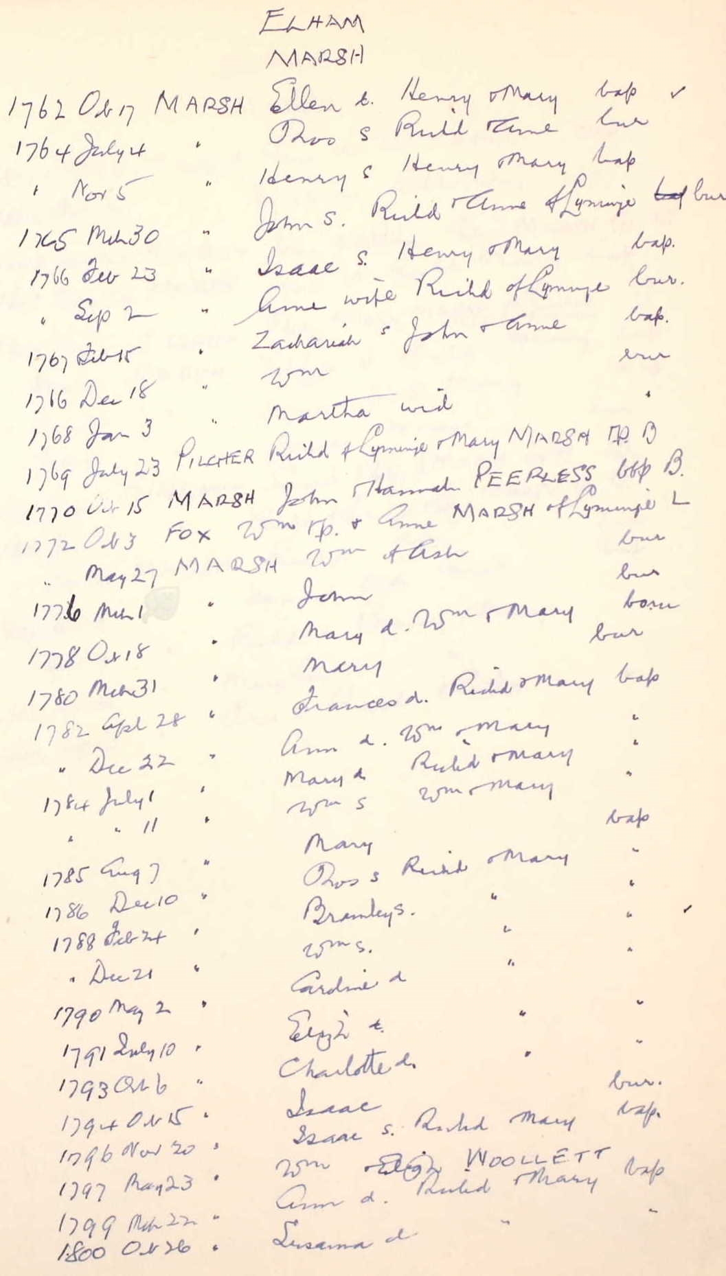 [ Home ] | [ Calendar ] | [ Surnames Index ] | [ Family History ]The child of Richard Marsh and Mary Bass,