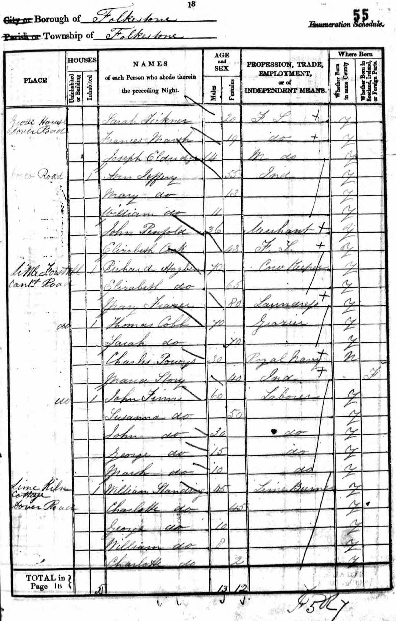 Charlotte spent all of her life in Kent, England. Throughout her life, she lived in several places around the county: on Lime Kiln Cottage, Dover Road in Folkestone on Jun 6, 18416; in Folkestone in 18511; and on Dover Road in Folkestone on Mar 30, 18515 and on Apr 7, 18617.
