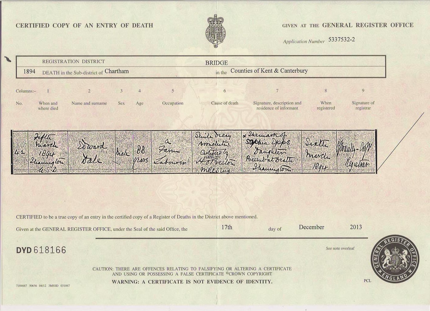 Edward Dale - Death Certificate