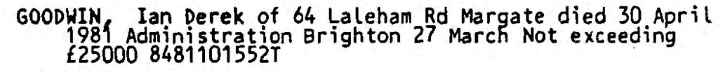 England & Wales Government Probate Death Index 1858-2019 - GBOR/GOVPROBATE/C/1984-1984/00089383